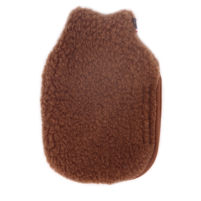 Housse de bouillotte en laine de mouton marron claire fabriquée en France